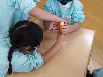 年長さんがベランダで育てて収穫したポップコーン用のトウモロコシをお料理していただく日だったようです!