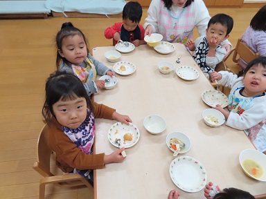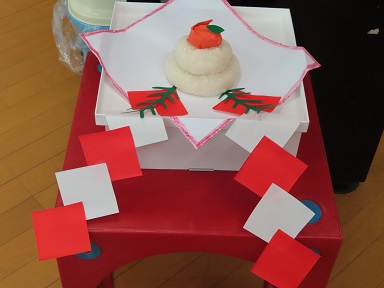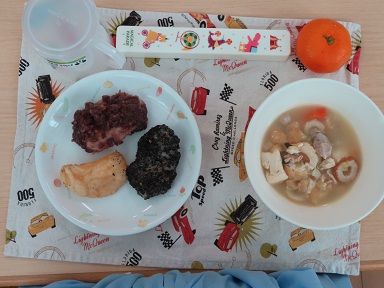 最近はお餅を食べ慣れないのか、噛むのが難しいお友だちもいましたが、みんな、いつもとは違う雰囲気の給食を楽しみながらいただけました。