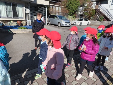 午後には、年長さんが芋版で作った年賀状を飯田郵便局まで投函に出かけました。専用ポストに自分で入れて、お正月の配達を楽しみに待ちます。今年はなかなか会うことの叶わない遠くに住むおじいさんやおばあさん、いとこに宛てたお友だちもいたようです。無事に届けてもらえるといいですね。