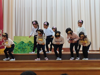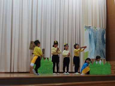 年中さんは、クラスで楽しんで行ってきた劇遊びを見せてくれました。