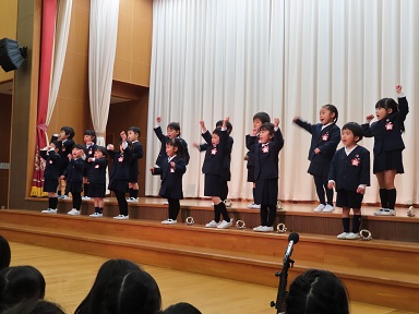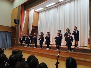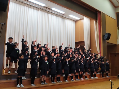 学年毎で客席を入れ替えたため、保護者の皆さんには、他の学年の発表を見ていただくことができず残念でしたが、お子さんやクラスのお友達の1年の成長を十分に感じていただけたのではないかと思います。