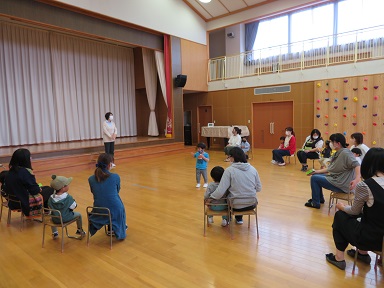 遊びの他には、園長先生と顔合わせをしたり、園内のお散歩をしたり、手遊びや大型絵本を見たりしました。