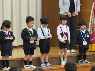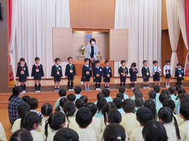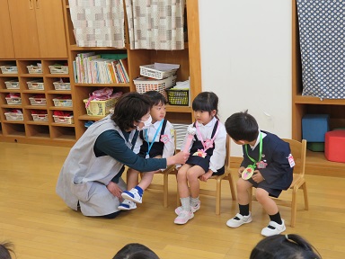 3歳以上児は遊戯室で誕生会を行いました。