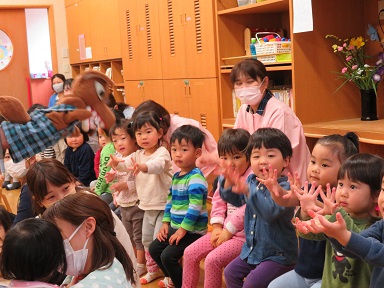 誕生会終了後に各クラスで誕生者を祝います。