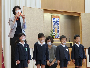 年少さんは5名。かけてもらったペンダントを見ている姿がかわいらしいですね。