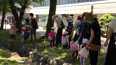 2歳児のちゅーりっぷさん いちごさんは保育室でお集まりや体操をした後に園外へ。