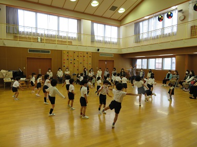 お集まりの後は、お家の方と一緒に体操を楽しみました。