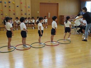 年少もも組さんはお集まりをしています。お家の方が来て下さって嬉しそうな子どもたちです。(8日)