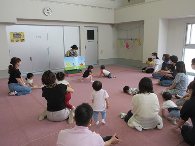たんぽぽさんは先生に大型絵本を読んでもらっています。(8日)