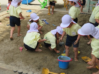 裸足で日なたを歩いた後に日陰を歩いてみると、、「なんで冷たいの?」と不思議に思う年少さん。