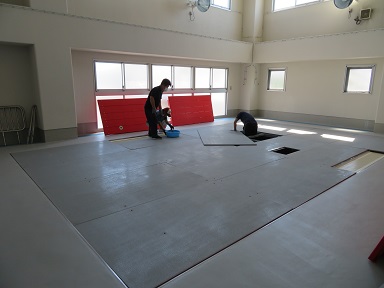 プールの時季以外は床板を貼って遊んでいたプール室が来週のプール開きに向けて変身です!