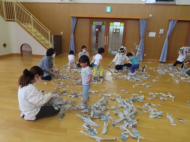 今回はおまけで2日目も出られる方には来ていただき、新聞紙で遊びました。