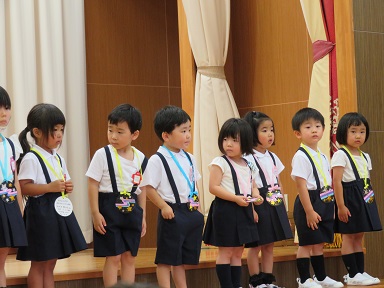 年長さんも年中さんも誕生者は6人でした。 ステージにしっかり立っていますね。