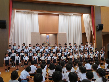 アトラクションは、年長児58人の歌。「うみ」「たなばた」「にんげんっていいな」を聞かせてくれました。