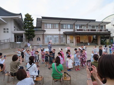 自分で染めたうちわを使って「ほたる」を踊ります。