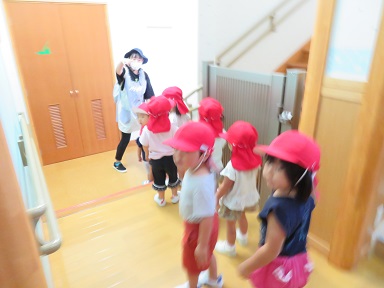 6日に火災避難訓練がありました。3歳以上児は予告なしで行いました。