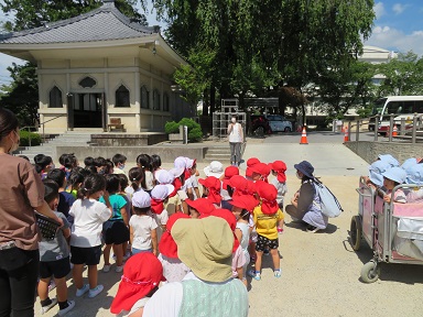 園庭に避難してからは様子を見ていて下さった園長先生よりお話をお聞きしました。
