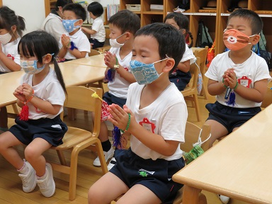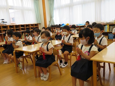 2学期の登園初日のお友だちもいましたが、年少さんも落ち着いてお参りが出来ています。