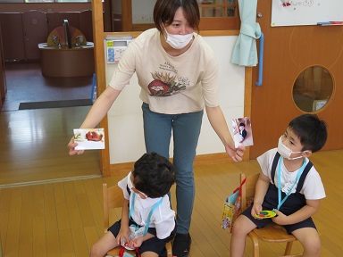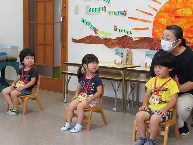 年少さんは、7月の誕生日にお休みしたお友だちも入れて3人でした。