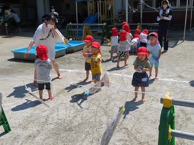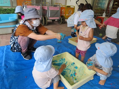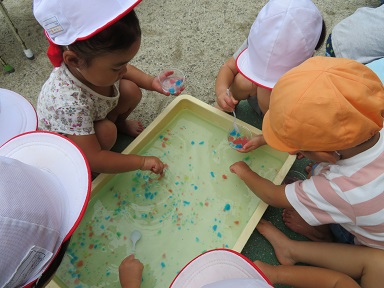 子どもたちは夏ならではの遊びを楽しんでいます。