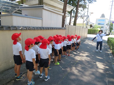 予定していた交通安全教室は、長野県内の感染レベルが5となっていることから各学年ごとに安全に気を付けて道路を歩くようにしました。