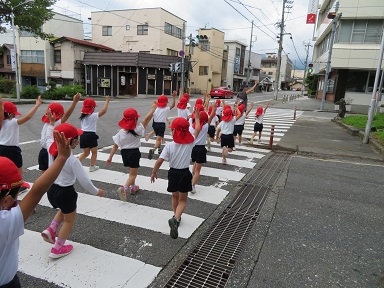 交通安全に関しては、園だけでは十分な指導がなかなか出来ません。各家庭でもお散歩や買い物の際に道路の歩き方や信号の渡り方など確認していただき、安全に対する意識を高めていけたらと思います。