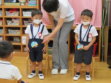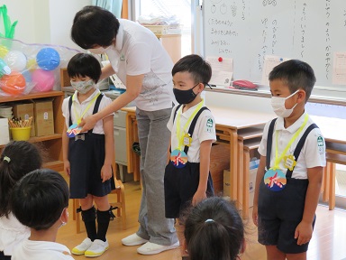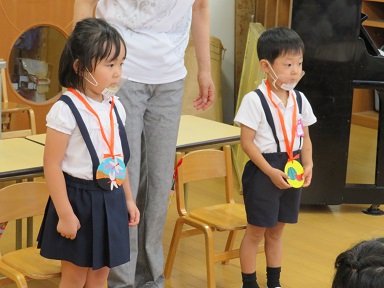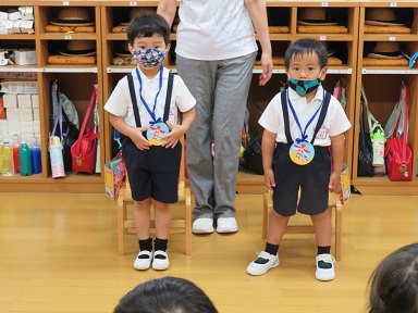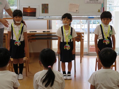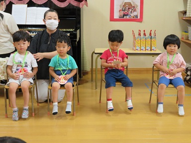 年中さんは8月の誕生会にお休みしたお友だちも含めて4人でした。