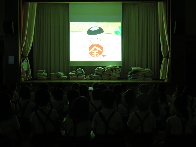 DVD「金太郎」を見ています。夜なので暗幕をしなくても電気を消せば暗くなりました。