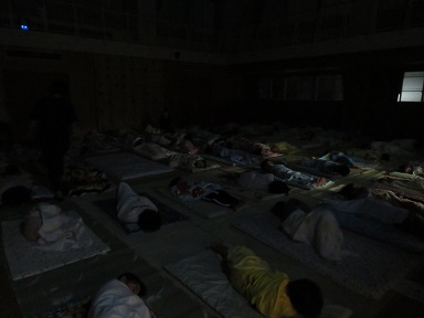 電気が消えました。これから一晩中幼稚園の先生たちが皆で順番に見回って子どもたちを見守ります。