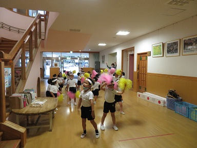 年中さんと年少さんが一緒にダンスを楽しみました。