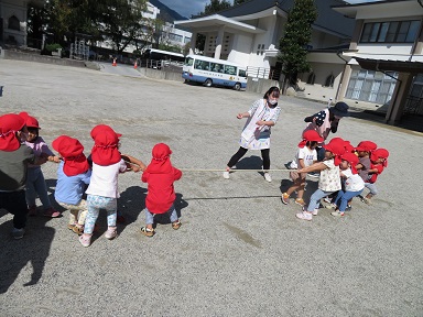 ちゅーりっぷのお友だちは年長さんのつなひきをしています。