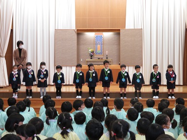 年少さんは、1人。1人ですがしっかりステージに立ってお祝いしてもらえました。