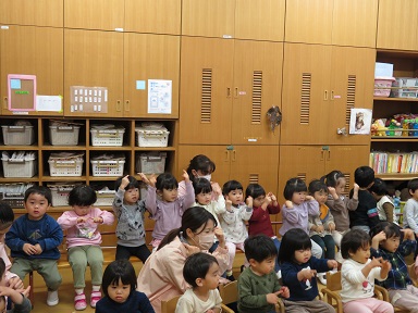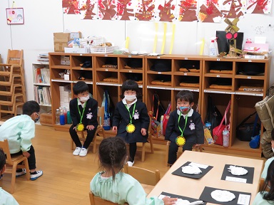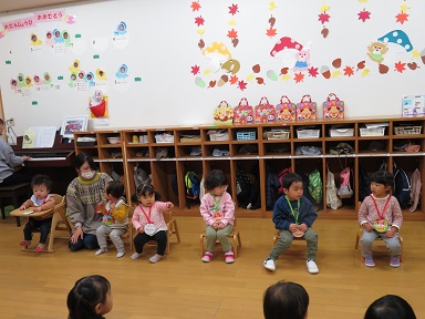 年中さんは、10月の誕生会にお休みしたお友だちも含めて5人でした。