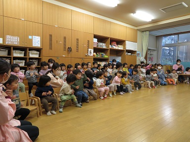 3歳以上児のお友だちは遊戯室で誕生会を行いました。