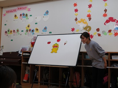 アトラクションは、池上先生のパネルシアター「はらぺこきょうりゅうぺこぺこくん」でした。