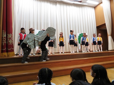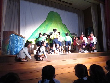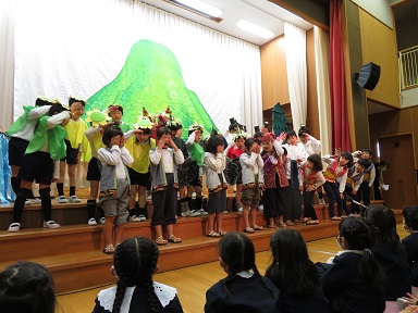 それぞれの登場人物が打楽器の音と共に上手に表現されていました。最後はどうしてあのようになったのか分かるかな。