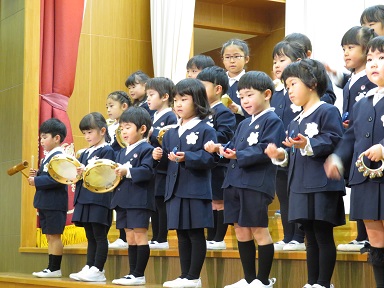 今年は、第1部が年少の手遊び歌と年中の歌と合奏、第2部が年長の劇と2部構成で客席も入れ替えて行いました。