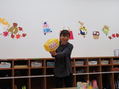 アトラクションは、紙コップシアターの「ぴょーん」でした。最後は紙コップからケーキが出てきました。