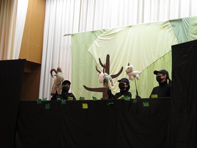 アトラクションはPTA人形劇クラブきらきら座のお母さん方による「3びきのやぎのがらがらどん」でした。