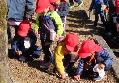 たくさんのどんぐりが落ちていて、子どもたちは夢中になって拾っていました。