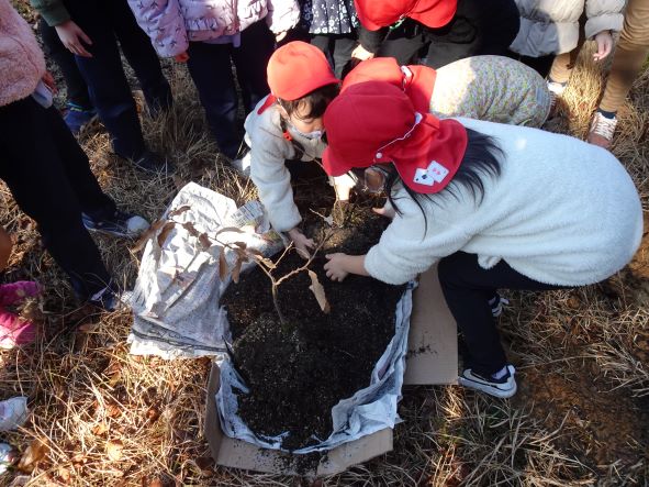 「全国子どもの森づくり運動」に加盟している当園の年長さんが、毎年携わっています。