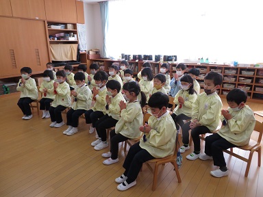 パソコンの画面を見ながら園長先生のお話をお聞きしたり、おまいりも行いました。