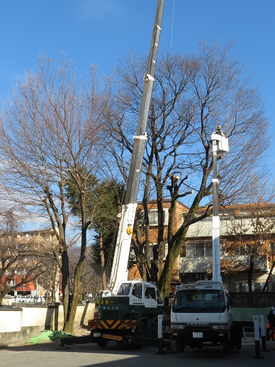 8日(土)お山のすべり台にある大きな木の伐採が行われています。