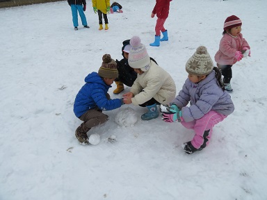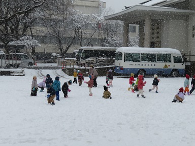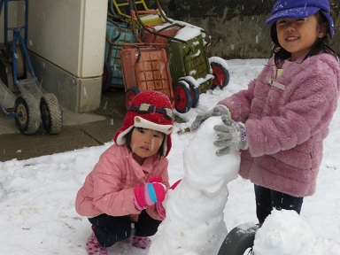 朝から雪が降った10日、子どもたちは雪で遊ぶことが出来ました。