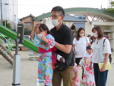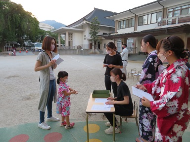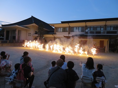 感染対策により、今回できなかった手持ち花火はおみやげで持ち帰り、お家の方と一緒にやって頂くようにしました。