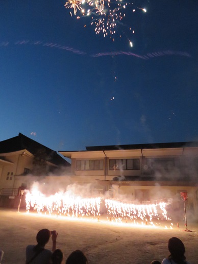 最後は「ナイヤガラの滝」と打ち上げ花火の共演です。「わあ、きれい」と歓声が上がりました。