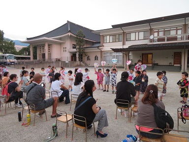 花火の後は、参加した皆で「ゆうやけこやけ」を歌って、楽しかった余韻を残しつつ花火大会は終わりになりました。