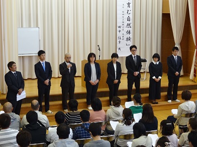 牧野PTA会長さん、1年間お世話になりました。 そして、平成30年度役員の皆さん。この日欠席の役員の方もありましたが、正副会長・書記・会計・監事の皆さん、よろしくお願いします。