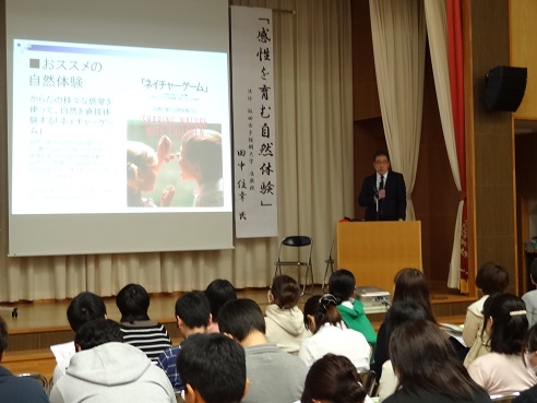 総会後の講演会では、飯田女子短期大学准教授の田中住幸先生から『完成を育む自然体験』のお話を拝聴しました。
