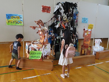 昨日から、橋北地区文化祭が始まりました。今年も、年長2クラスが共同で製作した作品を飾っていただいています。